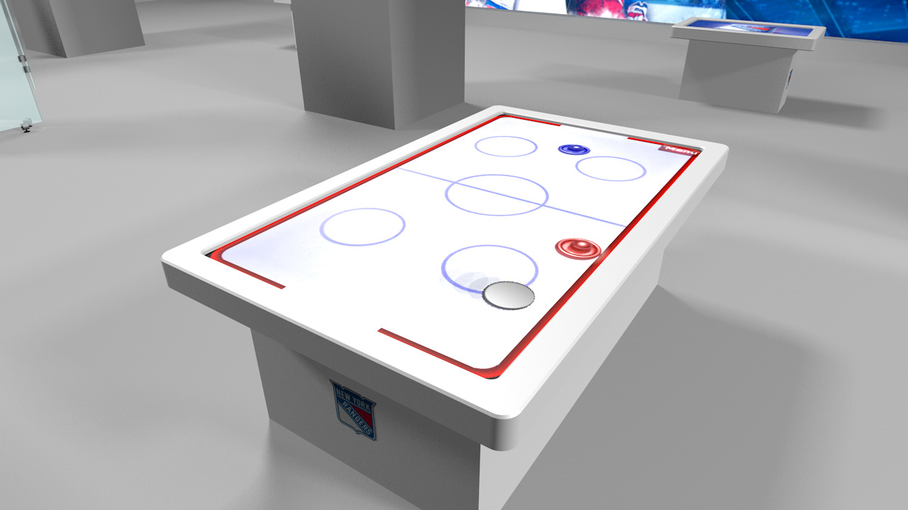 In June 2014 Visual Comet helped NY Rangers with decoration of their Rangerstown Hockey House. My job was to create video mapping elements and rough render of the interactive capabilities presentation. First two videos were projected onto the walls via set of multiple projectors creating seamless motion background. The challenge was to come up with a quick solution while staying within the strict brand guidelines.
